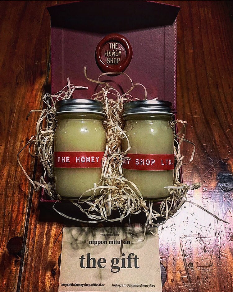 今季採れたてのピュアハニー!中でもブドウ糖成分の多いホワイト・ハニー100gを計2本にハニーディッパーをお付けしていたしまして贈答用の品として御用意させていただいた、ラインナップで御座います。